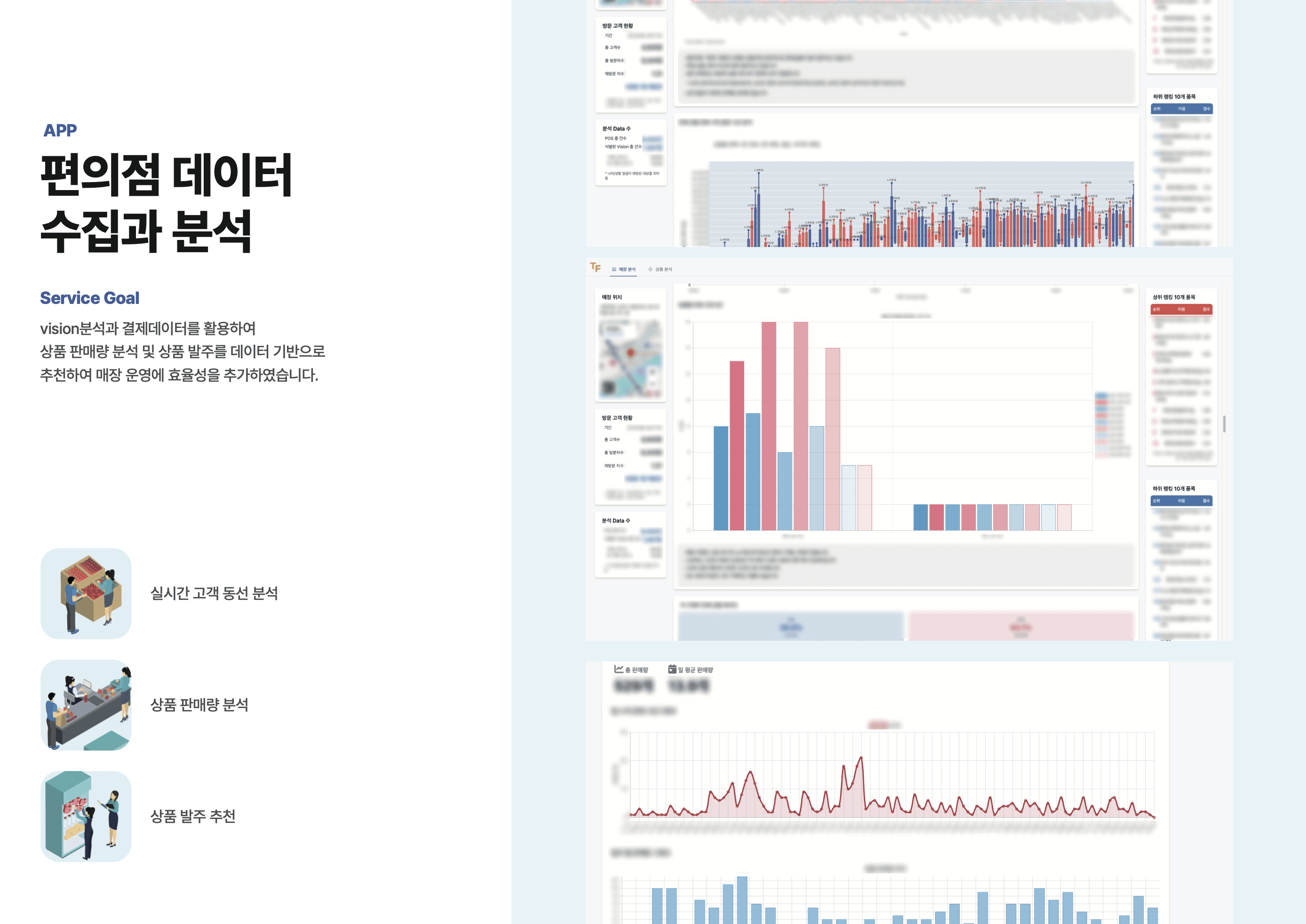 분석 데이터를 대시보드화해 실시간 비즈니스 인사이트를 제공하며, 회전율·재방문율을 반영한 판매 지수 및 발주 추천을 제공합니다.
